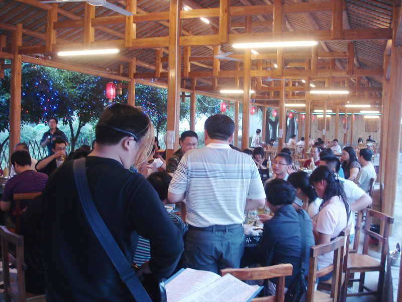 張家界武陵源大作坊美食城是一家集垂釣休閑,特色餐飲,夜市為一體的大型風(fēng)味美食城!位于風(fēng)景如畫的武陵源風(fēng)景區(qū)區(qū)政府所在地,占地3000多平方米,可同時(shí)容納400多人就餐。這里也是景區(qū)內(nèi)匯集土家美食,苗家美食的第一坊!美食城按純木四合院建造,內(nèi)設(shè)酒作坊,豆腐作坊,臘味作坊,糍粑作坊,有垂釣區(qū),燒烤區(qū),菜品自助區(qū),客人廚藝展示區(qū),農(nóng)產(chǎn)品展銷區(qū)等。酒作坊內(nèi)聘請了民間煮酒大師現(xiàn)場煮酒,你有機(jī)會(huì)可以現(xiàn)場吃到熱乎乎的頭鍋酒,酒坊內(nèi)有純米酒,包谷燒,高梁酒,有用野果泡制的各種果酒---燈籠酒,楊梅酒,彌猴桃酒等,更有特色的是把高梁酒放在正在生長的楠竹內(nèi),用竹內(nèi)竹膜的香味把酒增香,十二天就把竹子砍下再放養(yǎng)三天就好了,客人要吃現(xiàn)場鋸竹筒酒吃!豆腐坊也是聘請民間老農(nóng)現(xiàn)場用自制的石磨做豆腐,在這里你可以吃到真正有豆香味的原汁原味的石磨豆腐,和渣,菜豆腐,豆腐腦等豆制品!臘味作坊里有冬天用各種香料熏制的正宗湘西藏臘肉,臘豬頭肉,臘香腸,臘豬腳,各種臘制品臘野味等。糍粑坊每天在晚上人多用餐高峰時(shí)現(xiàn)場打滋粑,客人也可以自己參與打糍粑這個(gè)快樂的過程,想受過年時(shí)才有的熱鬧情景!在垂釣區(qū)里我們放養(yǎng)有很多野生魚類,有時(shí)間了你可以來這里休閑垂釣,得到的魚我們就會(huì)給你現(xiàn)場加工,有清沌的,紅燒的,青椒燜的,酸湯的,都很好吃哦。燒烤區(qū)里,我們高薪聘請了燒烤大師為你現(xiàn)場制做,你也可以自己動(dòng)手,有烤羊排羊腿,各種串烤,烤全魚,烤全兔等,還有各種鐵板烤可以自己炒著吃!菜品自己選區(qū)里有各種山野菜,壇子菜,干菜,臘味等,有各種鮮活的魚類,河蛘,水魚,田螺,龍蝦等,有各種農(nóng)家的土雞土鴨等,有各種鮮活的野味等你來享受美味呢!客人廚藝展示區(qū)里老板特設(shè)制地幾口大鍋, 很有特色的是, 你可以自己親自下廚, 酸甜苦辣任您自由調(diào)配 。 煮好了, 大家就圍著這“灶臺(tái)”合一的飯桌享受張家界的美食了。(張家界的三下鍋是很有特色的,是邊煮邊吃的, 只是這“三下鍋”是“大型三下鍋”而已。到張家界旅游,吃張家界的“三下鍋”是一種獨(dú)有的旅游體驗(yàn),到大作坊吃“大型三下鍋”,則更將會(huì)為你的旅程增添一份難得的回味。農(nóng)產(chǎn)品展銷區(qū)里展示著當(dāng)?shù)鼗蛳嫖鞯貐^(qū)最暢銷的農(nóng)產(chǎn)品食品:正宗湘西鄉(xiāng)里臘肉,香腸,各種臘制品,洗車河霉豆腐,靈潔牌剁椒辣醬系列,菌油,正宗茶籽油,苗家酸湯,鄉(xiāng)里正宗葛粉,大壇湘西五糧液,竹簡敲敲酒,張家界茅巖霉茶,野生蜂蜜,高山葛粉,張家界第一山珍巖耳,葛根片等等!