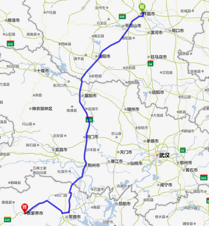許昌去張家界自駕車自助游線路圖全程高速):