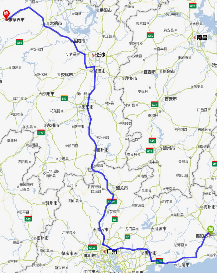 現(xiàn)在位置:張家界旅行社->交通指南->自駕車路線 -> 揭陽到張家界旅游自駕車線路,揭陽去張家界自己開車要多長時(shí)間,有多少公里