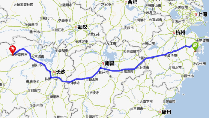 寧海去張家界自駕車自助游線路圖全程高速):