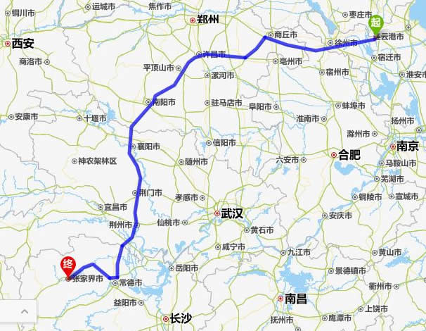 新沂去張家界自駕車自助游線路圖全程高速):