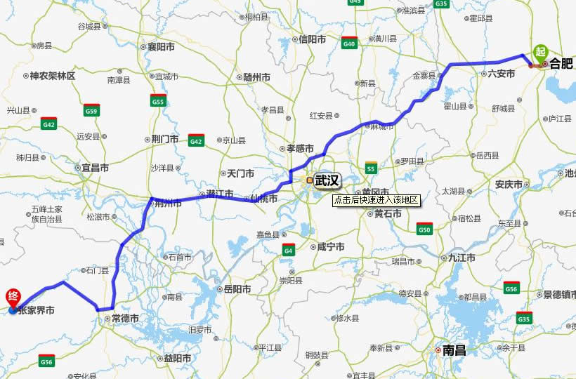 左右,沿途經過黃山——景德鎮(zhèn)——九江——陽新縣——崇陽縣——岳陽——安鄉(xiāng)縣——常德市——慈利縣——張家界。