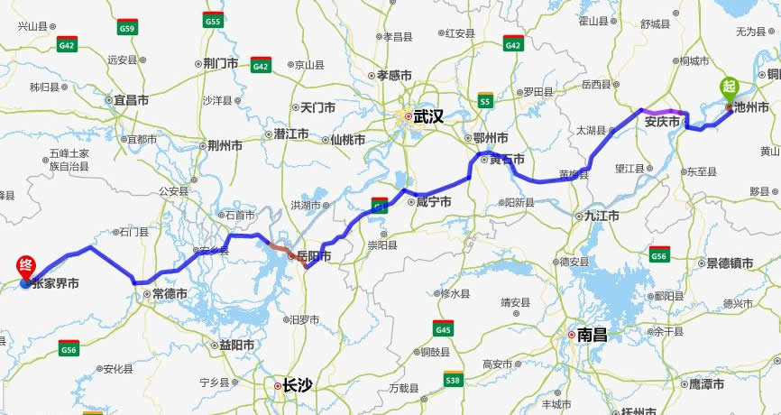 九華山去張家界自駕車(chē)自助游線路圖全程高速):